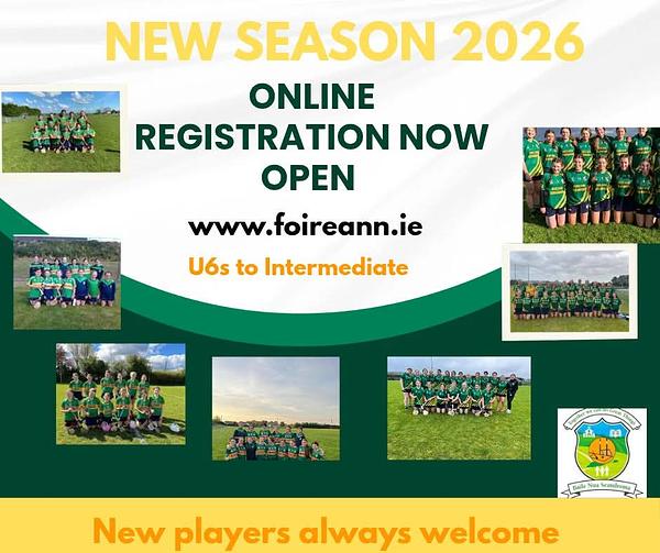 Newtownshandrum Camogie Cub wish to advise that the registration portal for 2026 is now open on https://www.foireann.ie/